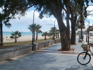 The aire we headed for at Benicassim was fine, but alongside a main road – however it did have water (double phew!!), so we filled up and then drove into town to explore (to look for somewhere to wild camp), we found ...... Lidl’s (there were a couple of vans parked up)!!! We parked, had lunch and then got our bikes out.It was a lovely day when we set out, so I changed into my short shorts. Benicassim has dedicated cycle paths and a circular route of 15k around the town. We headed towards the beach; after a couple of miles it got quite windy, then it started raining (huge great plops) – we cycled on, it got sunny again.